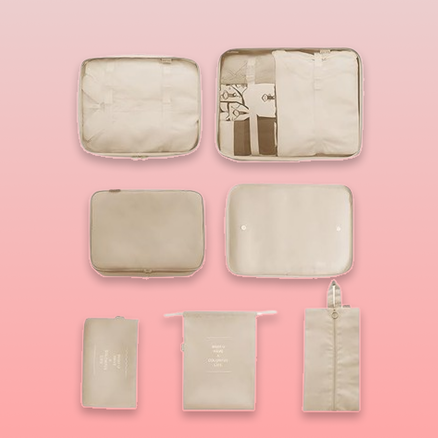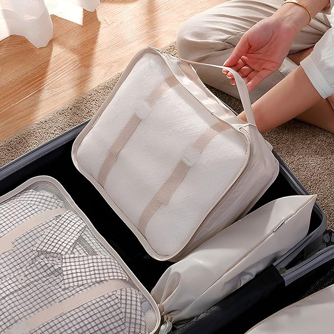 What is included in the 7-piece packing cube set?